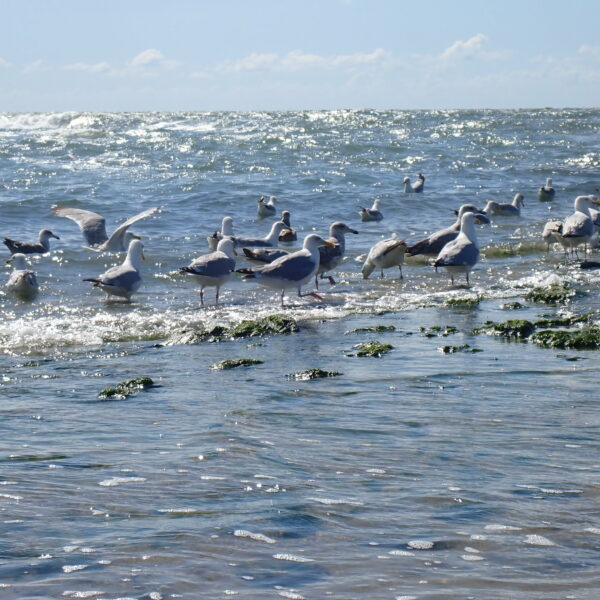 Ik loop en loop… gedachteloos, eindeloos. Mijn voeten zakken weg in het knisperende natte zand, een golf wist mijn voetstappen uit. Het geruis van de golven geeft een verdovende trans, het voelt alsof ik zweef. Het eindeloze landschap voor mij verandert per minuut van kleur….